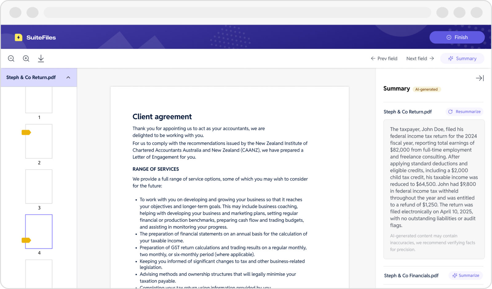 Long, detailed documents are important, but they can also feel intimidating. That’s why we’ve built something new to make the process smoother and friendlier for your clients: AI-powered document summaries in SuiteFiles.