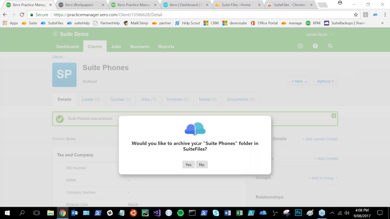 - Ability to archive/unarchive a client, and have the same happen to that client folder in SuiteFiles